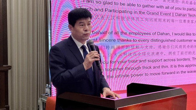 公司副董事长张茹张总在大会上做重要报告,张总系统性地阐述了大汉科技如何以核心技术突破与全球智能制造体系为双翼,驱动品牌向全球价值链高端迈进。通过向全体客户传达大汉科技全球视野的研发定位, 顶尖的智能制造实力,全场景覆盖的产品矩阵,价值驱动的品牌服务;并宣贯了大汉科技全球金融支持计划和全球潜力市场代理商招募。报告最后,通过一系列生动的现场视频,向与会嘉宾直观展示了大汉科技全球化旗舰产品的应用。此次报告不仅是一次成果展示,更清晰地传达了大汉科技坚定不移的全球发展战略决心,专注核心领域,深耕客户价值,立志成为全球高端装备领域备受尊敬的领先品牌。