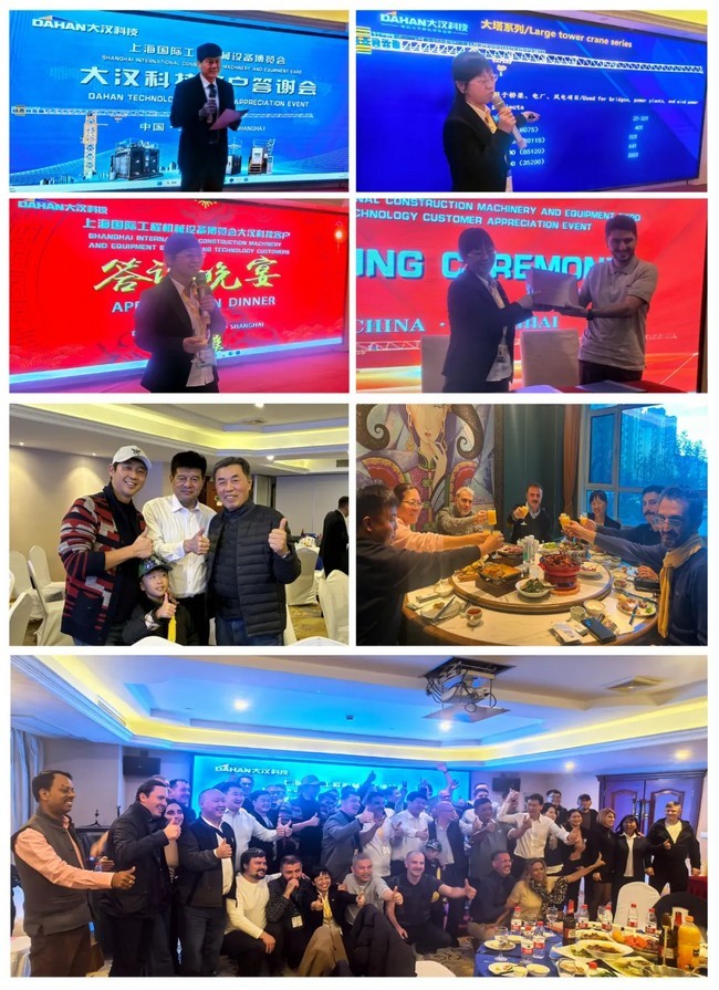 从早筹划、早布局积极邀请海外客户到大汉科技bauma CHINA展位、产品及展厅的布局,从代表大汉科技技术研发实力和制造水平的塔机、施工升降机产品精细化生产、运输、安装、展示到大汉企业文化展厅设计、制作、搭建;从海外访问团莅临大汉科技bauma CHINA展位与现场工作人员互动交流,亲身体验大汉智能化产品的魅力到参加大汉科技客户答谢会及答谢晚宴再到分批次访问大汉科技智能化工厂,每一步都彰显了大汉科技积极“出海”,融合海外市场的雄心与实力。